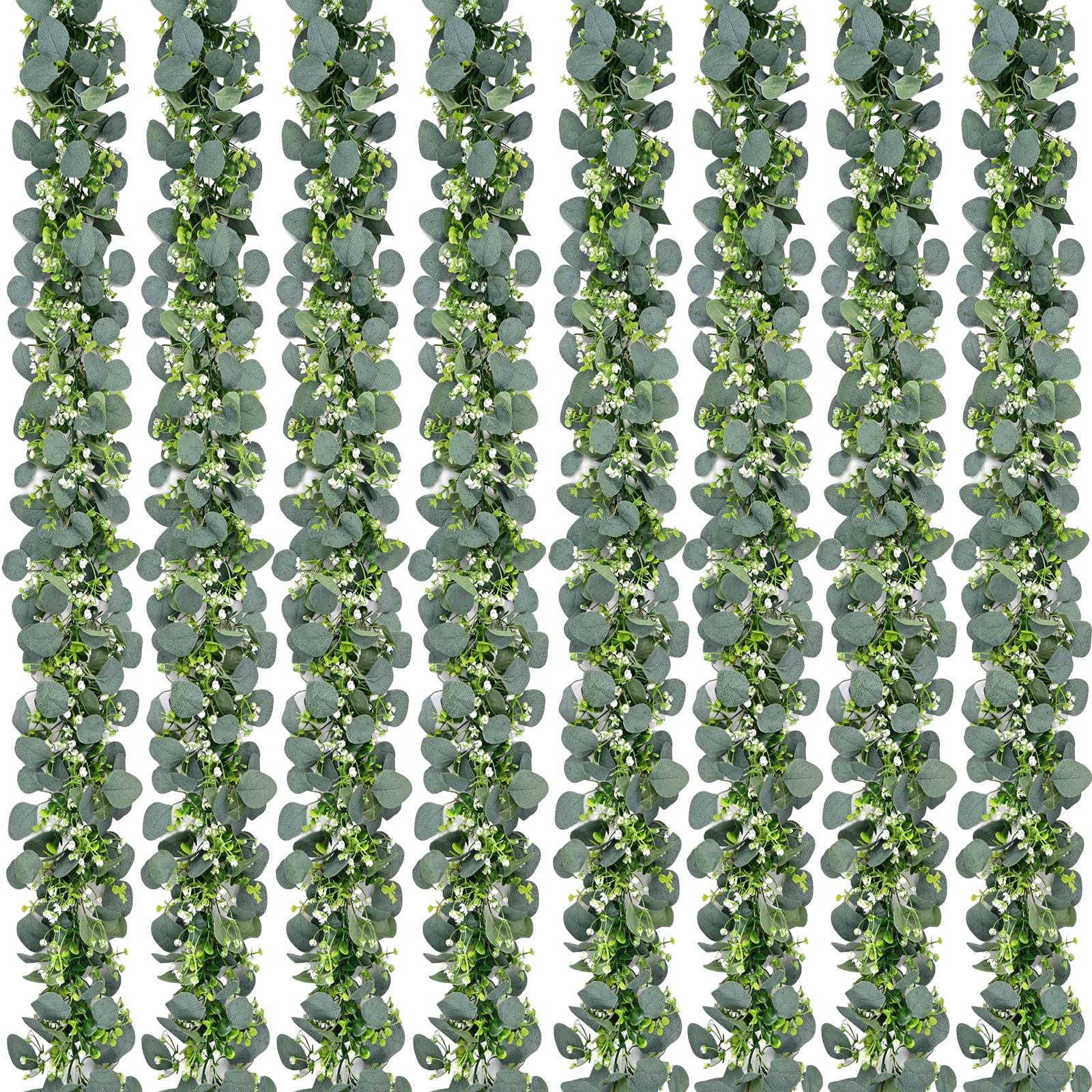 Waipfaru 8Pcs Eucalyptus Garland, 5.9FT Greenery Garland, Green Garland with Flowers, Artificial Faux Silver Dollar Eucalyptus Leaves Vines for Table Home Wedding Mantle Party Indoor Outdoor Decor
