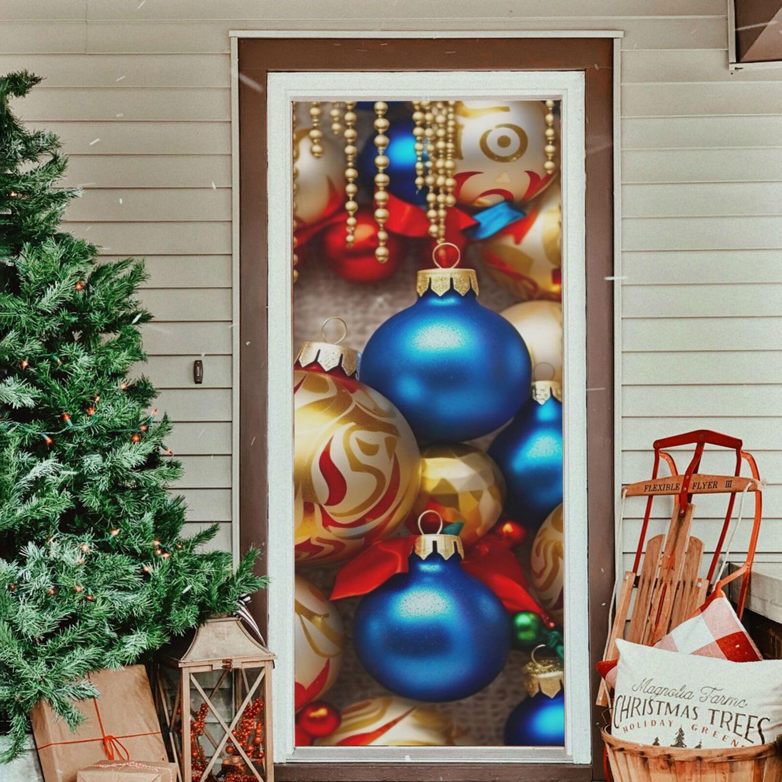 Wajiw Christmas Ball Door Cover Washable High Elastic Fabric Front Door Cover for Festive Party Home Decor,32x79Inch