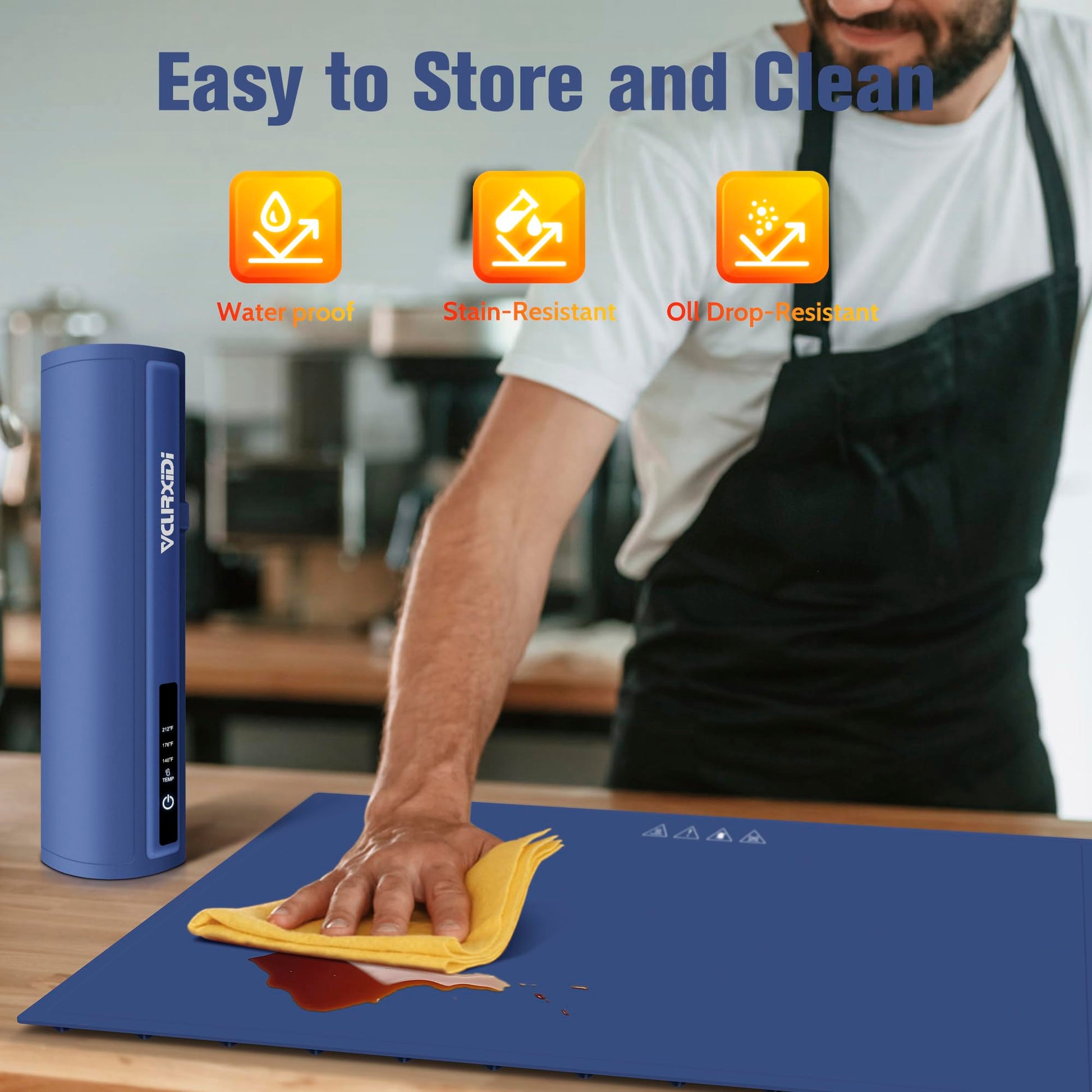 - 【Rollable & Portable】 Food warmer pad is made of premium grade silicone material, can be rolled up for storage without taking up space, and is easy to clean without leaving stains. The bottom of the food warmer mat has a thickened support, which keeps the heating pad away from the desktop and does not damage the desktop.