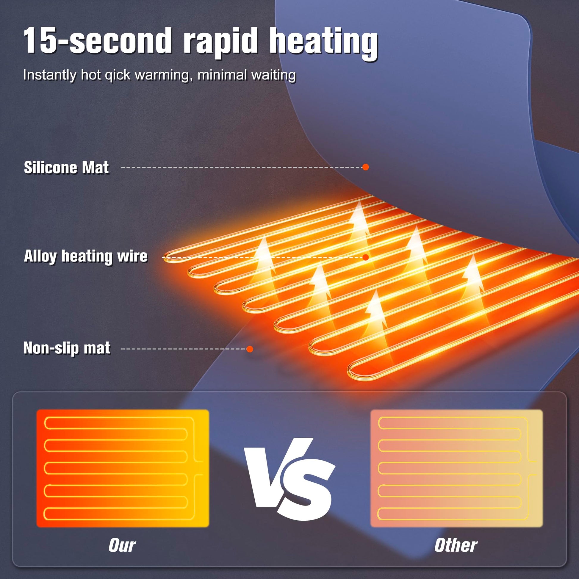 - 【3 Temperature Settings】Silicone electric heating tray allows you to enjoy the convenience of precise temperature adjustment, keeping your food at the temperature you need, without worrying about the food cooling down and the sauce solidifying.