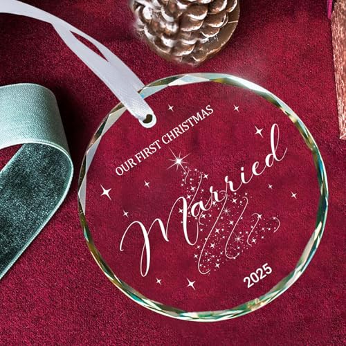 Wedding Gift First Christmas Married Ornament 2025 Mr and Mrs Gift for Newlyweds Couple 2025 Personalized Bridal Shower Gifts Our First Christmas Married Ornament 2025