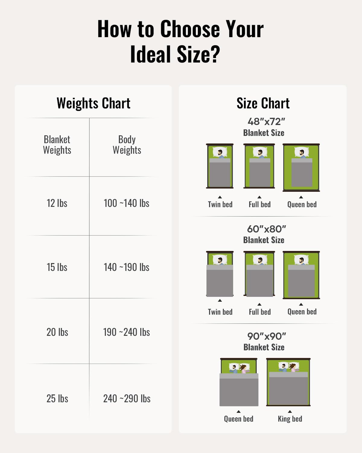 - Using the Blanket: Our Sherpa fleece weighted blankets are meant to be used individually. We recommend you choose a blanket weighing about 10% of your body weight plus 1 pound. This 15 lbs weighted blanket is intended for individuals weighing about 140 - 190 lbs. Please refer to our size chart or contact us for more precise sizing