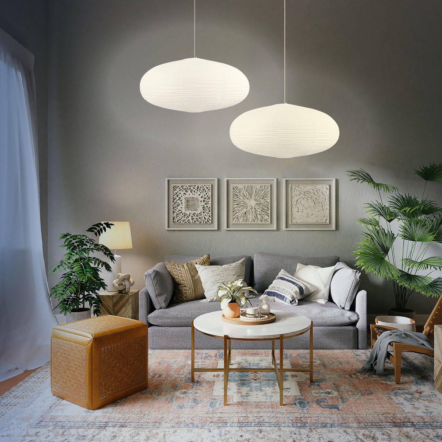- [Showing Individuality]- Our handmade crumpled rice paper adds a soft natural texture that sets us apart. The large paper shade lamp measures 16.54inches in diameter, 9.45inches high, top opening 5.7inches, bottom opening 4.33inches. DIY decorative, and easily noticeable, it adds a beautiful landscape to your home and makes your home more cozy and fragrant
