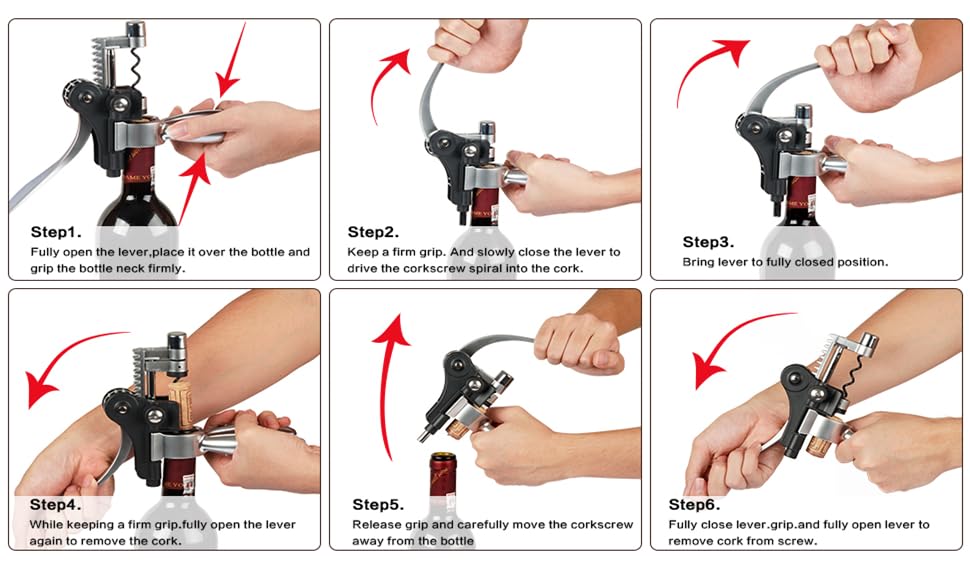 - Easy To Operate: It's classic straight-up performance mechanism ensures a quick opening of your favorite wines- Simply attach the wine opener to the bottle with a hand, and then pull the lever upwards and downwards - it's off with the cork in seconds