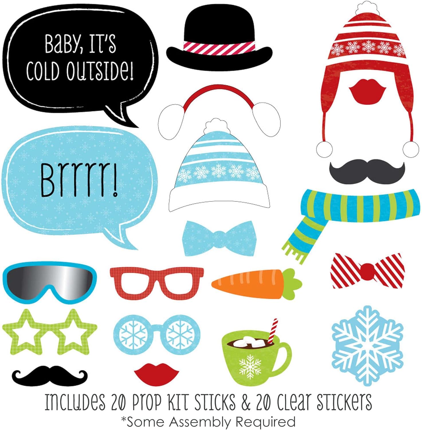 - 20-Piece Winter Photo Booth Props Kit INCLUDES 20 Holiday party photo booth props, 20 prop kit sticks and adhesives for assembly. EASY ASSEMBLY: Simply attach the printed DIY photo booth props to the stickss with included adhesive and reinforcing stickers.