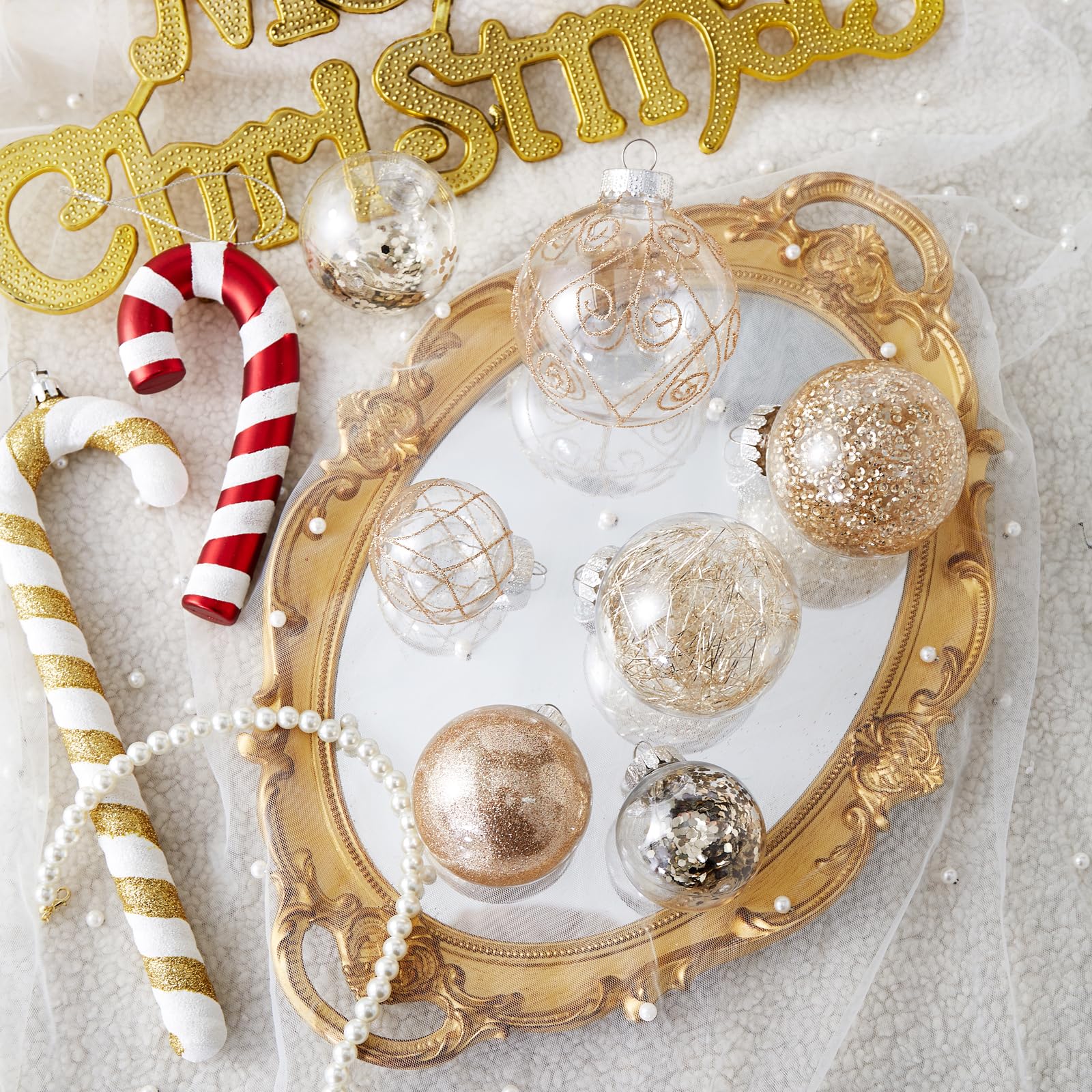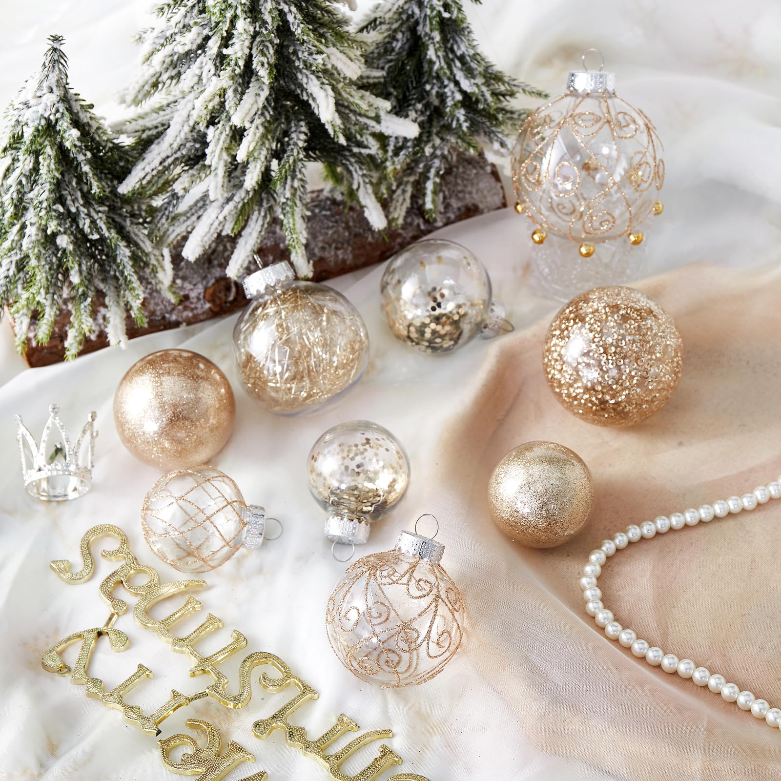 Wironlst Christmas Ball Ornaments Shatterproof Clear Large Plastic Hanging Ball Decorative Baubles Set with Stuffed Delicate Decorations (Multi-Size, Champagne)