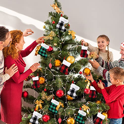 XIMISHOP 12PACK Christmas Mini Stockings, 7¡± Double Side Xmas Red Green White Buffalo Plaid Fireplace Hanging Snowflake Stocking with Plush Cuff for Christmas Tree Decor