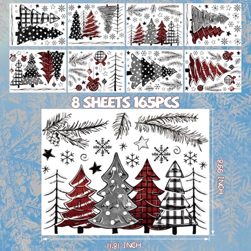 XZENTIRA 165 PCS Christmas Window Clings and Decorations - Black Red Tree Snowflakes Stickers for Home Party Supplies Glass Display - 8 Sheets