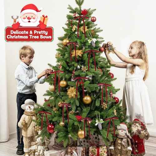 - Perfect Size for Christmas Tree: The velvet fabric of the bows measures 3/8 inch in width, and the Christmas bows' dimensions are 5 x 7 inches, with a dainty and elegant design. These velvet Christmas tree bows can easily adorn Christmas tree tops, branches, or wreaths, balancing beauty and practicality flawlessly.