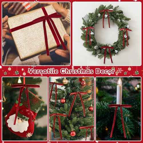 - Effortless to Use: We offer pre-formed bows, so there's no need to spend time tying knots by hand, and each bow comes with a twist tie, making it easy to decorate-just tie these velvet bows to your Christmas decorations, and you can easily create an elegant festive atmosphere in seconds.
