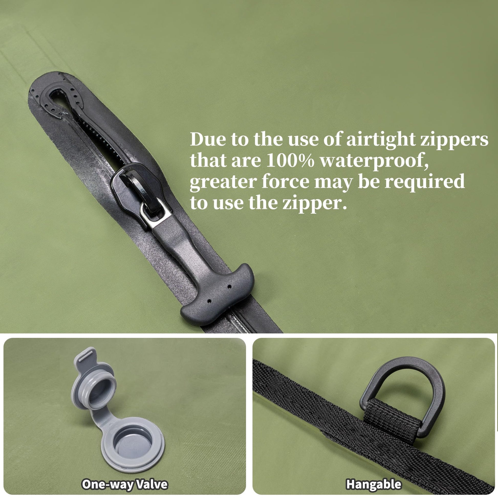 • 【Airtight Zipper】Our vacuum bags for travel are fitted with high - quality IP67 airtight zippers. They are similar to the zippers found on diving suits. The function of this airtight zipper is to prevent gas and liquids from seeping in. It keeps your clothing dry and clean, protecting them from any potential moisture or dirt during travel. When using the zipper, it is important to pull it all the way through to ensure an optimal seal, thus maximizing the effectiveness of the airtight feature.