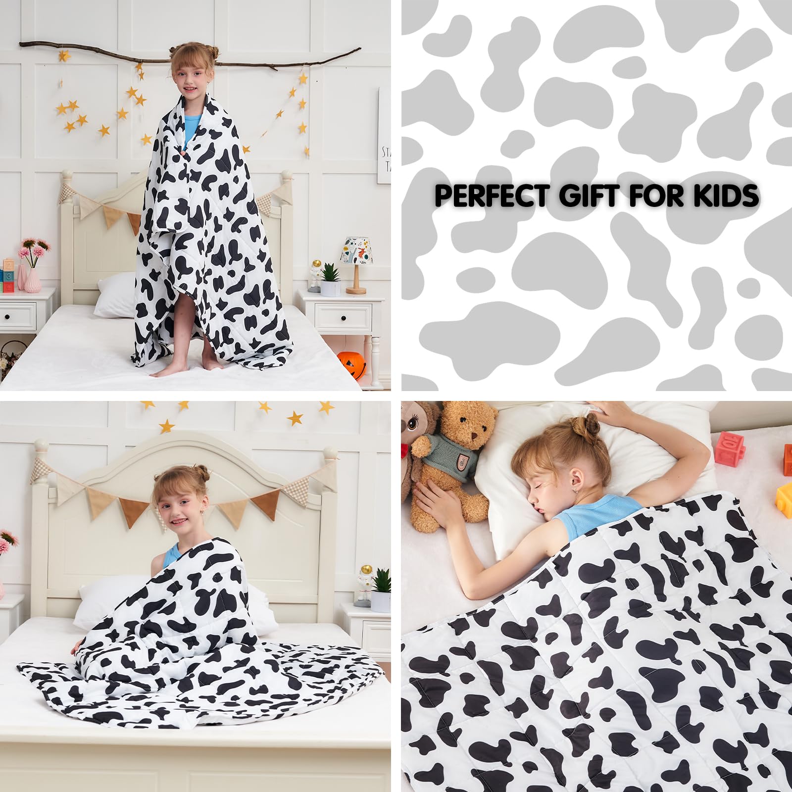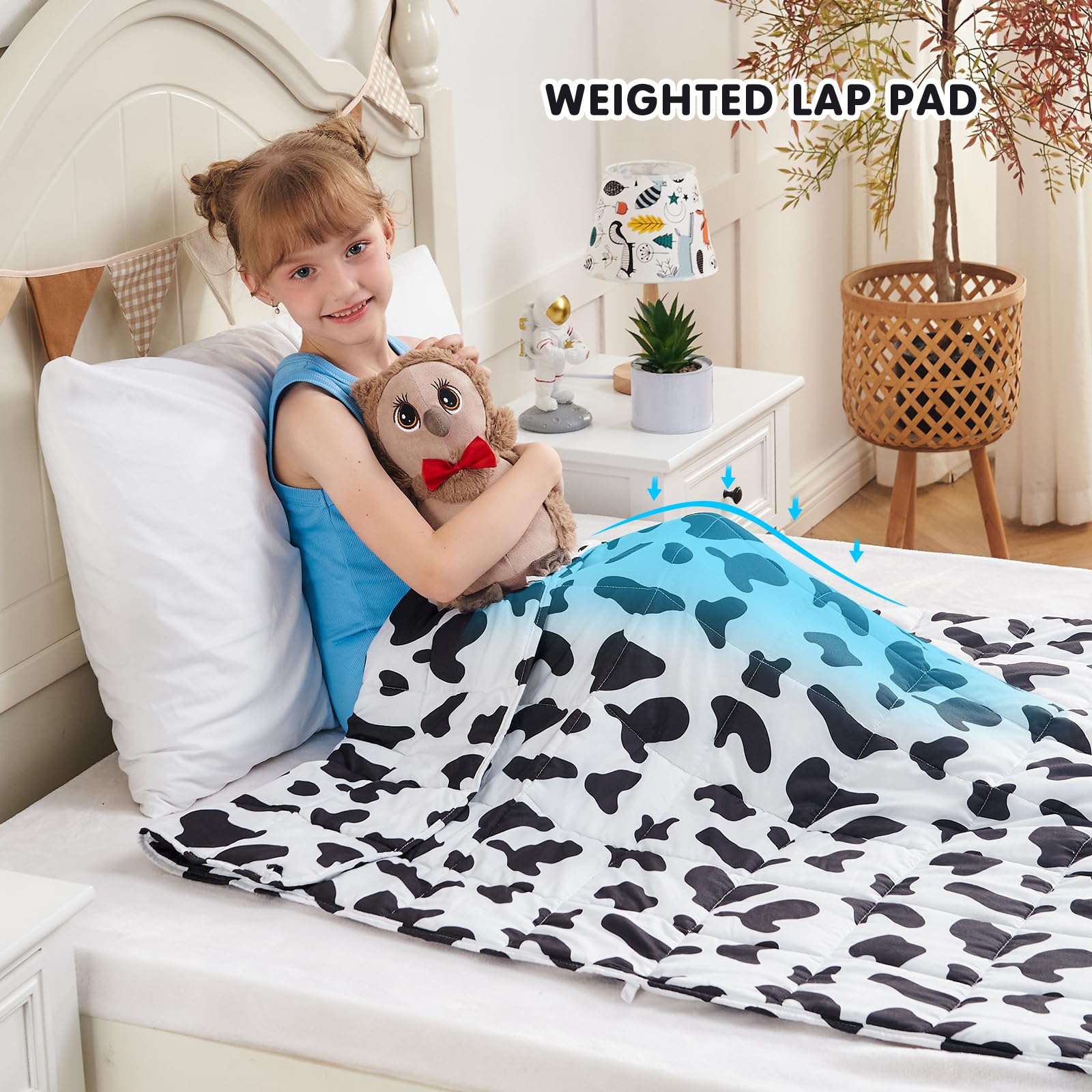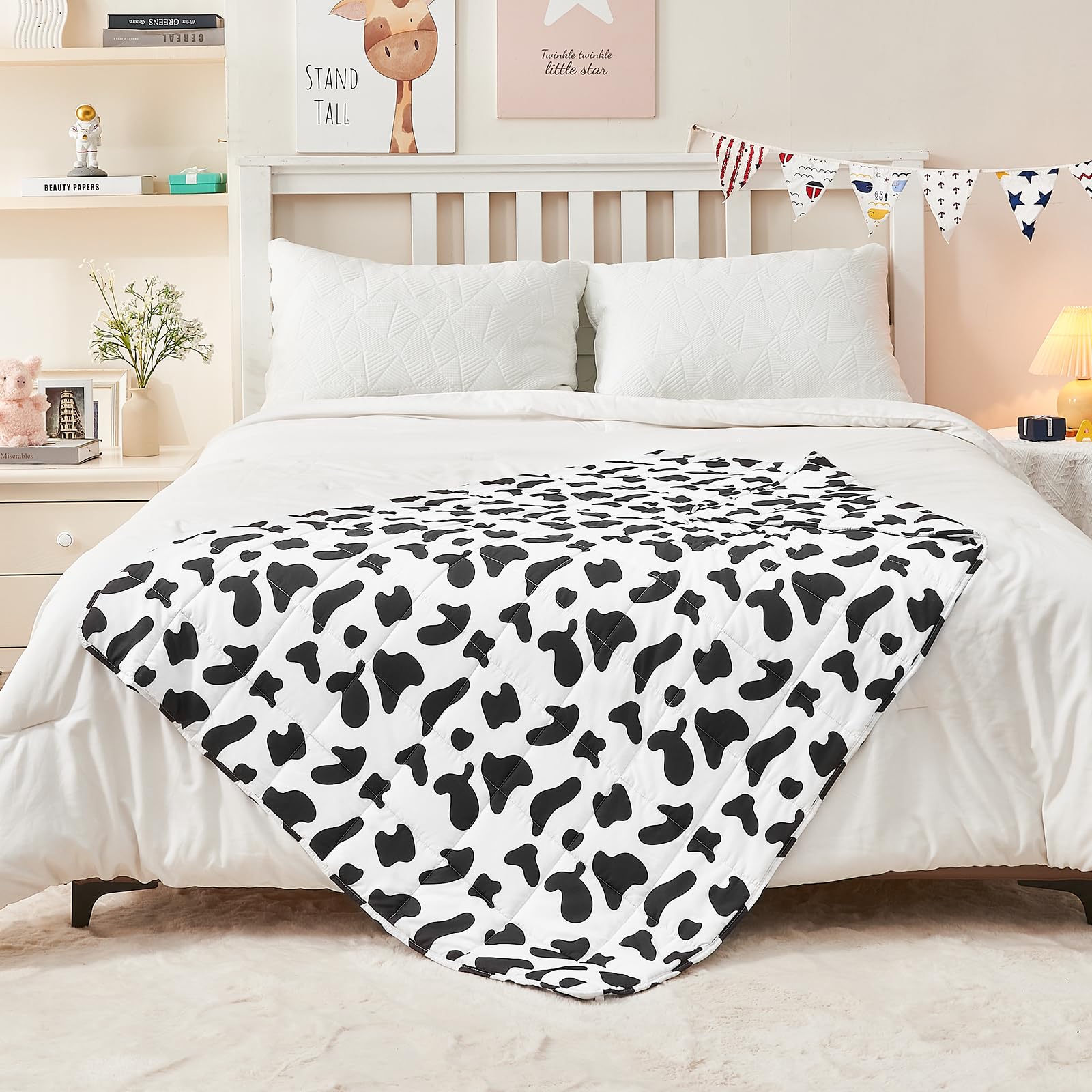 yescool Weighted Blanket 3 Pounds Cooling Weighted Lap Blanket, Cow Print Heavy Blanket for Sleeping, Comfortable Weighted Throw Blanket for 20-40lbs,36"x48"