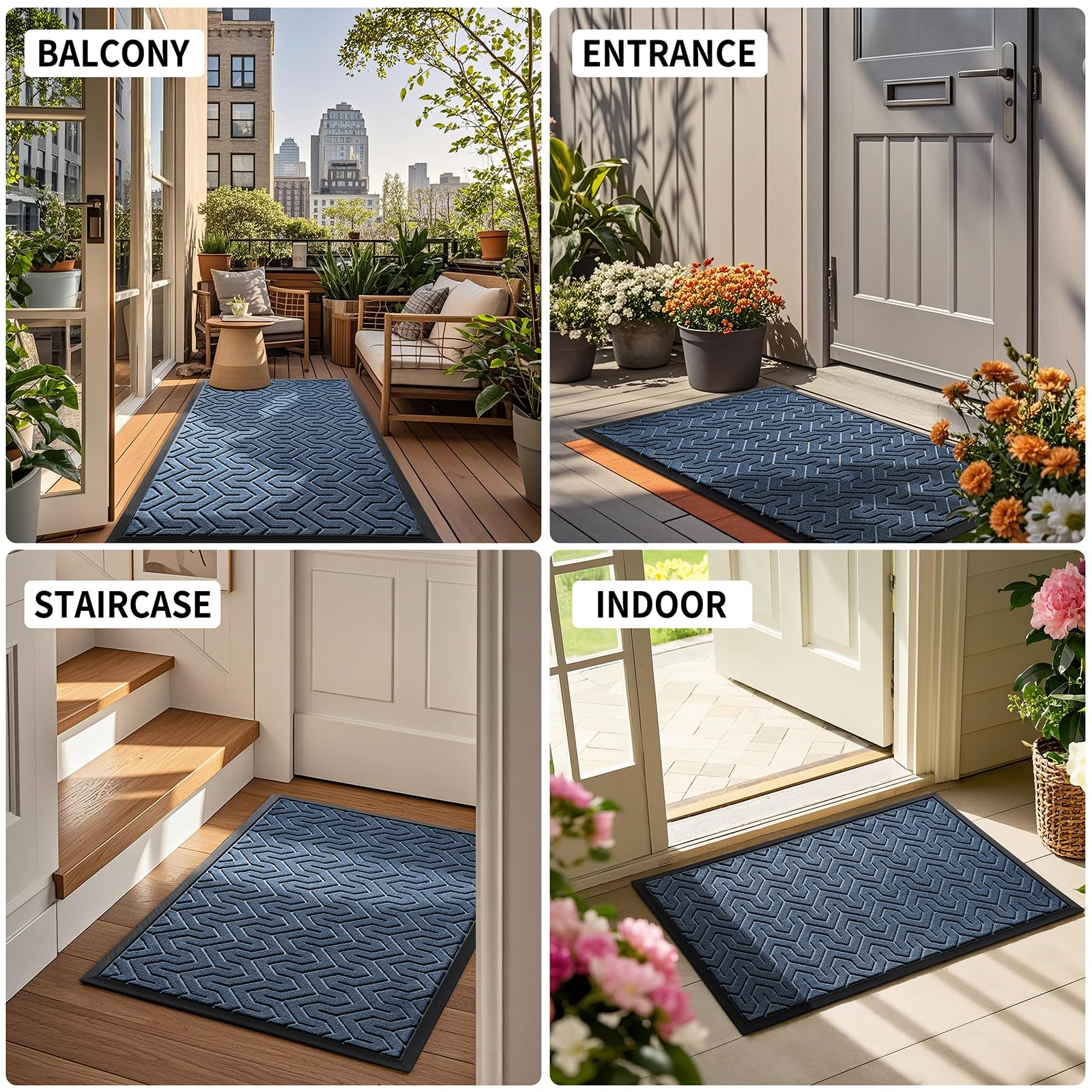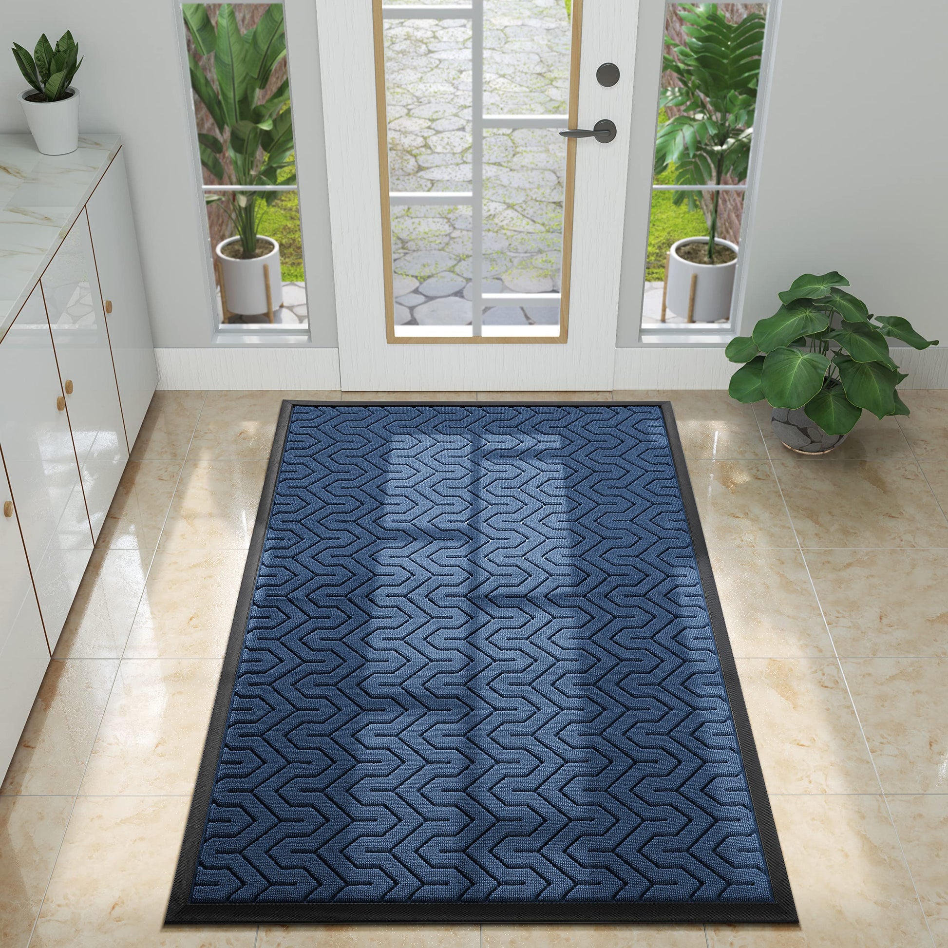 Yimobra Front Door Mat Outside Entrance, 47x32 Waterproof Outdoor Indoor Welcome Mats, Heavy Duty Doormat, Low Profile, Non Slip Garge Porch Entryway Mat, Easy Clean, Blue