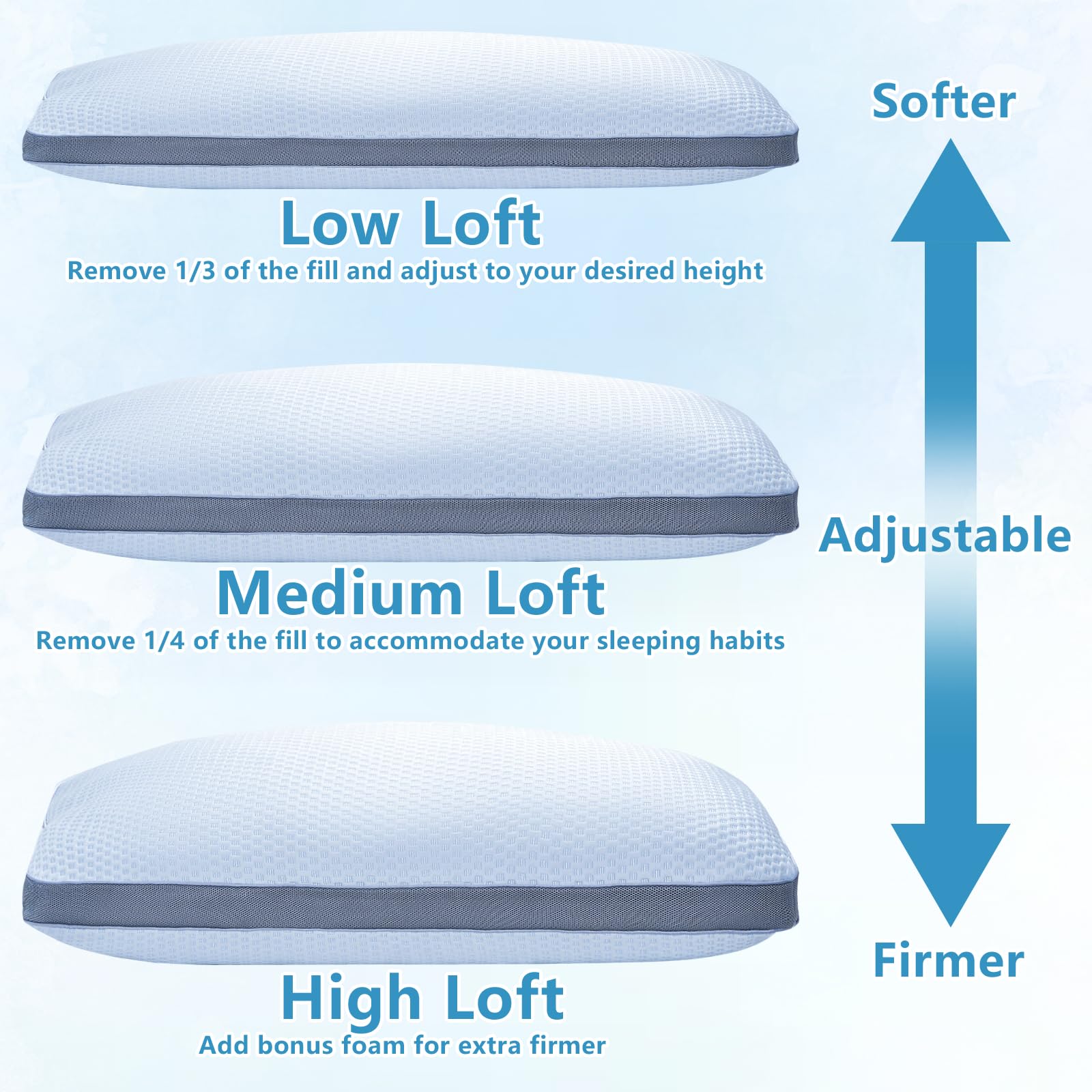 - 【Adjustable hardness】The specially designed adjustable structure allows you to adjust the pillow's hardness according to personal preferences. You can add or remove foam filling based on your body shape, shape, or sleeping position, ensuring everyone gets the right level of support and comfort.