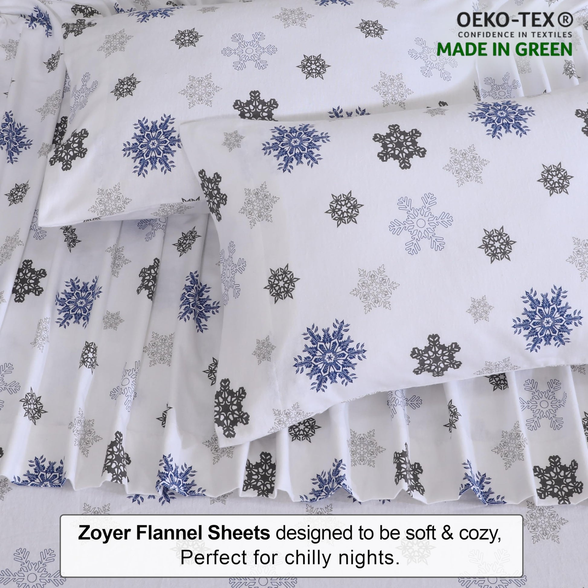 ZOYER Flannel Sheets King Size Set - Soft & Comfy Deep Pocket Cotton Flannel Bedding, Fitted Up to 16", Double Brushed King Bed Sheets, 4 Pieces, White Snow